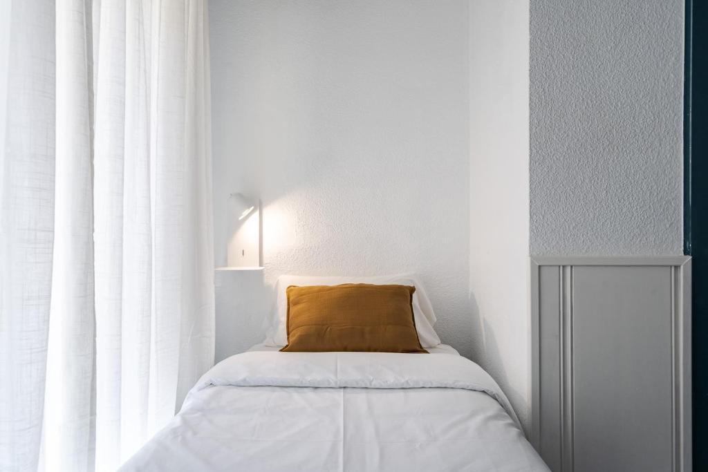 Acogedora habitación individual en Hotel Agur con una cama individual y baño privado. Ideal para viajeros solos que buscan confort en una ubicación céntrica.